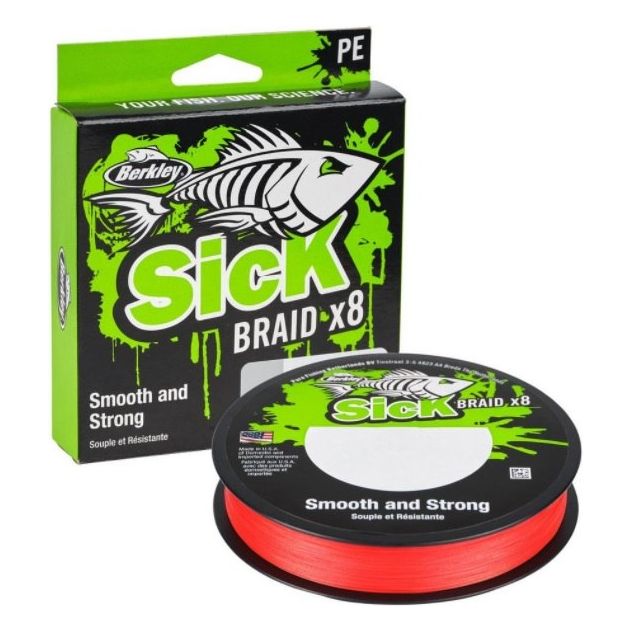 Berkley SICK 8-fach geflochtene PE-Schnur, eine superglatte Hochleistungsschnur mit geringer Dehnung und hoher Knotenfestigkeit.