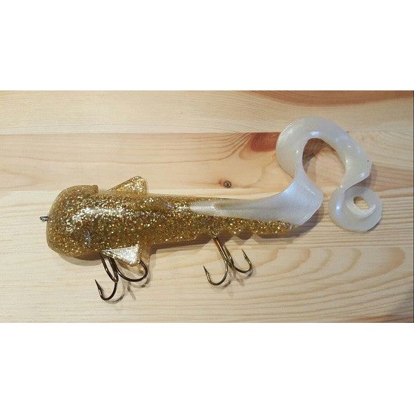 Der Hellkat Shockbait, ein Softbait mit langem, gelocktem Schwanz.