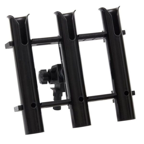 Verstelbare hengelhouder voor maximaal drie hengels. Een speciale sleuf in de buizen houdt de hengels netjes op hun plaats. Een zeer populair product onder bellyboot- en rubberbootfans. Kan gebruikt worden in combinatie met de Berkley en Scotty producten.