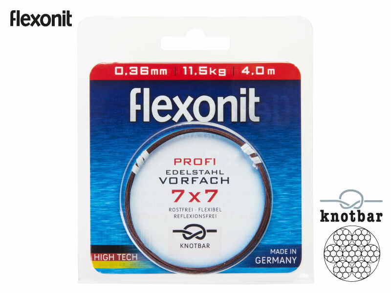 De Flexonit 7x7 stalen leader bestaat uit 49 afzonderlijke strengen. Hij is knoopbaar, roestbestendig en bestand tegen zout water. Hij rafelt niet, heeft een niet-reflecterend oppervlak en biedt een hoge slijtvastheid. De Flexonit 7x7 stalen leader is geschikt voor vrijwel alle moderne visserijmethoden, of het nu gaat om spinvissen, trollen of vissen met natuurlijk aas. De soepelheid en sterkte zijn de belangrijkste voordelen van dit leadermateriaal.