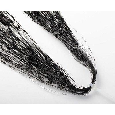 Transparante kleuren afgewisseld met een zwarte streep geeft een mooie synthetische vervanging voor grizzly hackles.