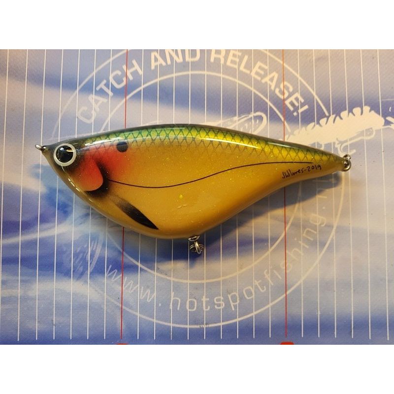 Dit is een grote jerkbait die langzaam zinkt en ondanks z’n formaat een levendige actie heeft.