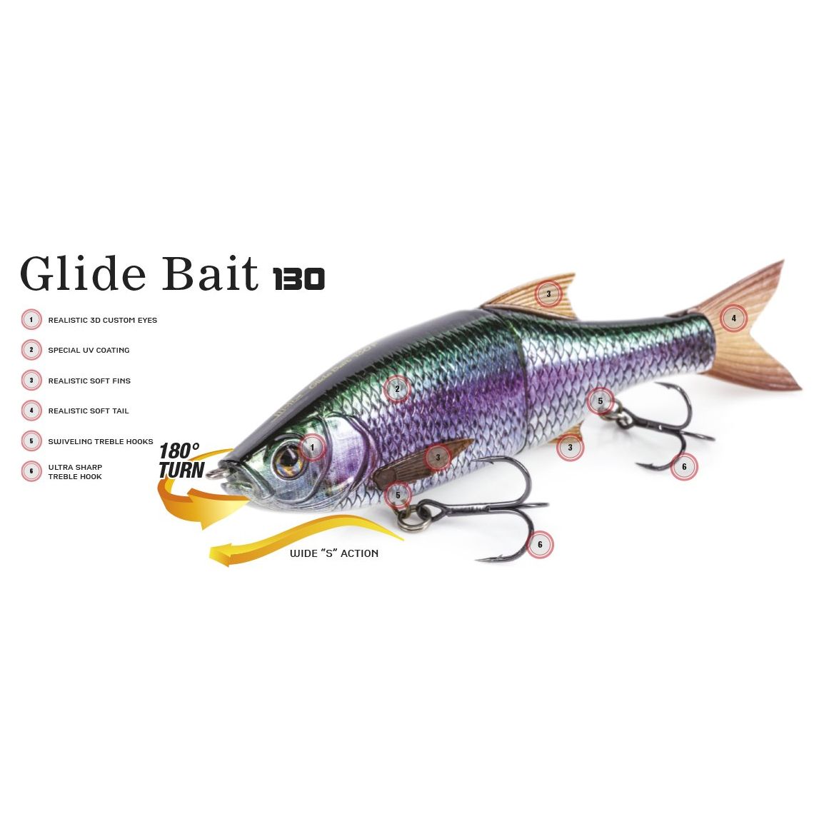 De Molix Glide Bait 130 is een maatje kleiner dan de Glide Bait 178 van Molix. Perfect te vissen met wat lichter materiaal en super geschikt voor in de polder.