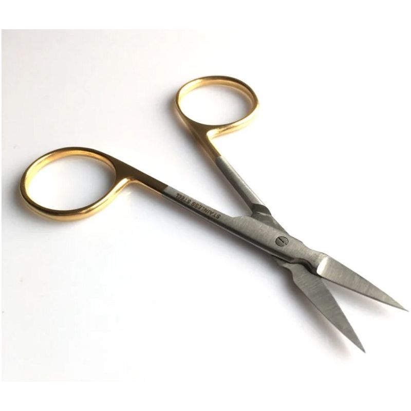 Een schaartje, recht, 12 cm lang met microkartels en een Arrowpoint.